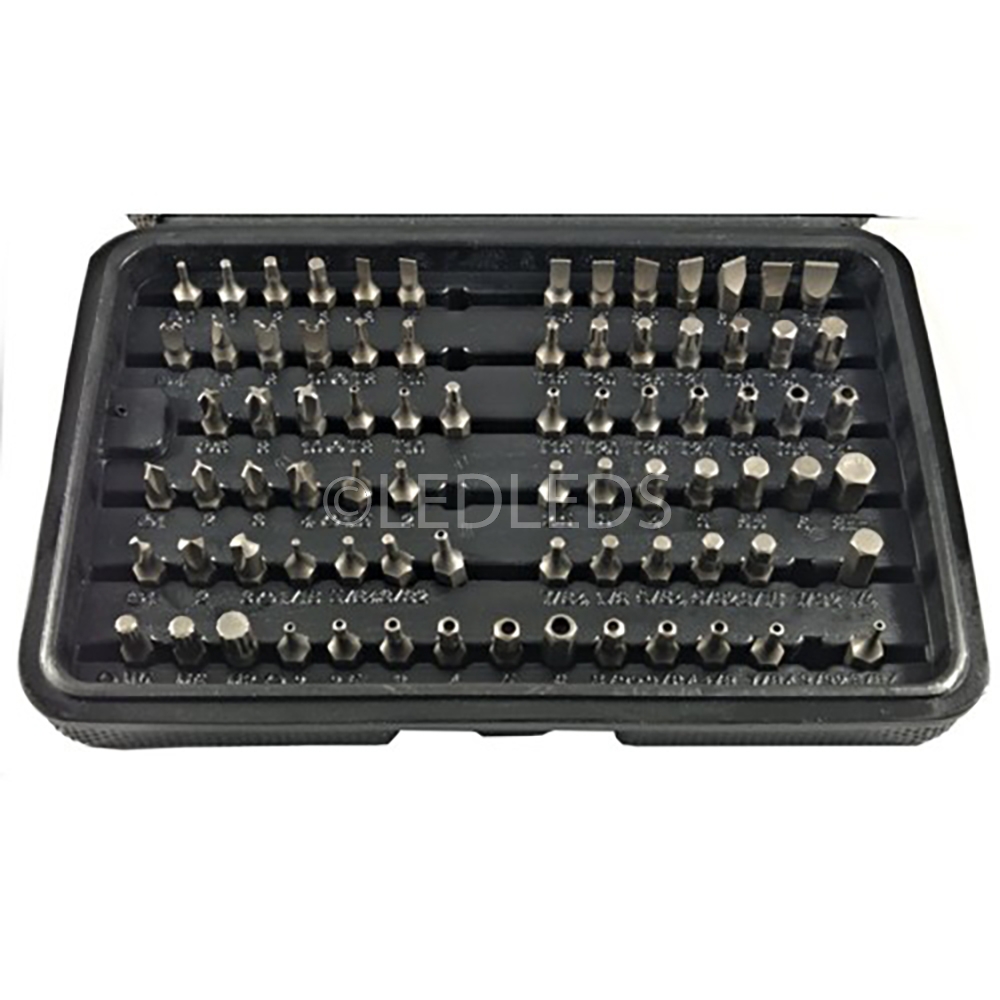 Il kit comprende 95 bussole di cui cacciavite a taglio,croce,bussole esagonali,chiavini a stella torx e tanto altro.
