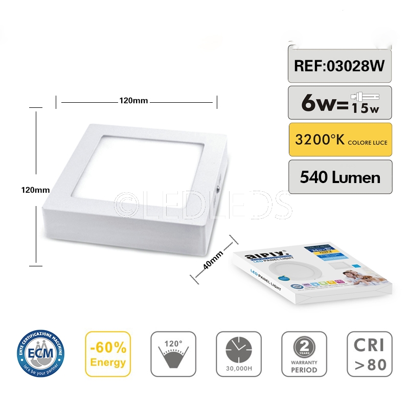 APPLIQUE PLAFONIERA FARETTO QUADRATO DA SOFFITTO A LED 6W 220V LUCE CALDA 3200K