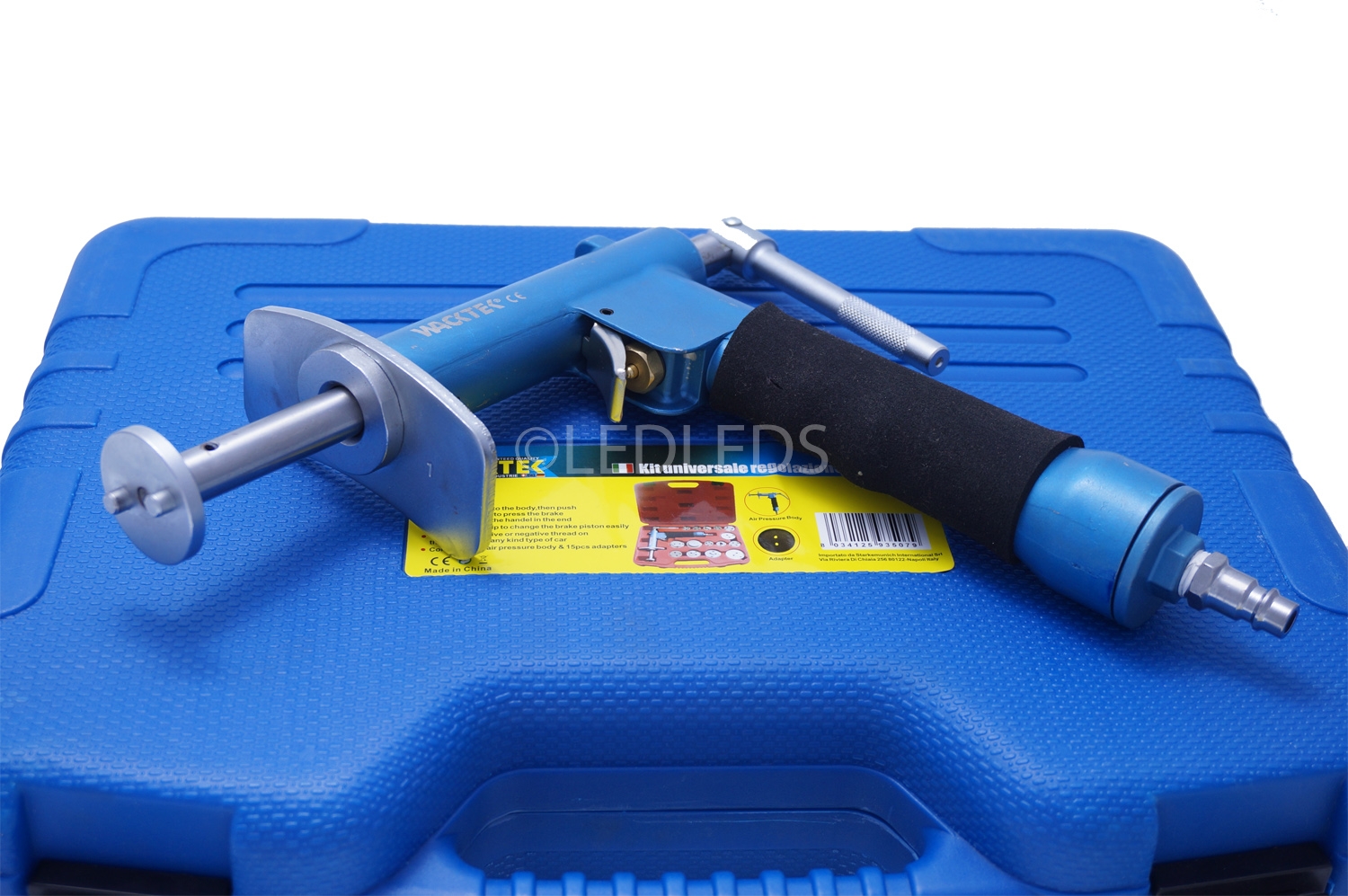 Utensile pneumatico per arretrare e ruotare i pistoncini dei freni a disco destrorsi e sinistrorsi.