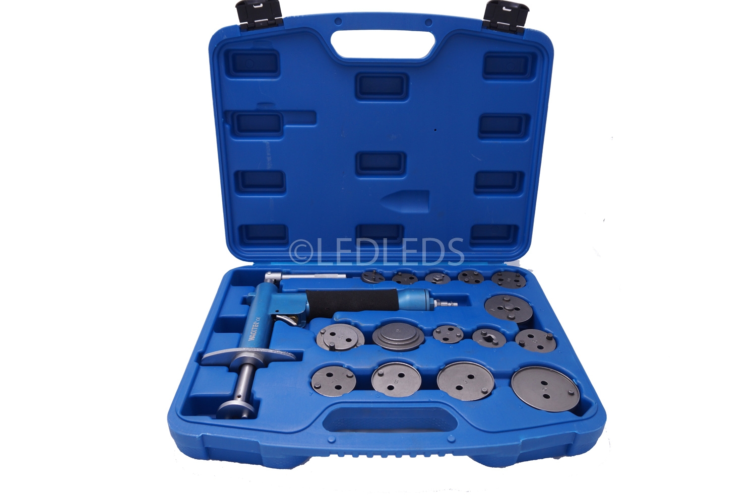Utensile pneumatico per arretrare e ruotare i pistoncini dei freni a disco destrorsi e sinistrorsi.