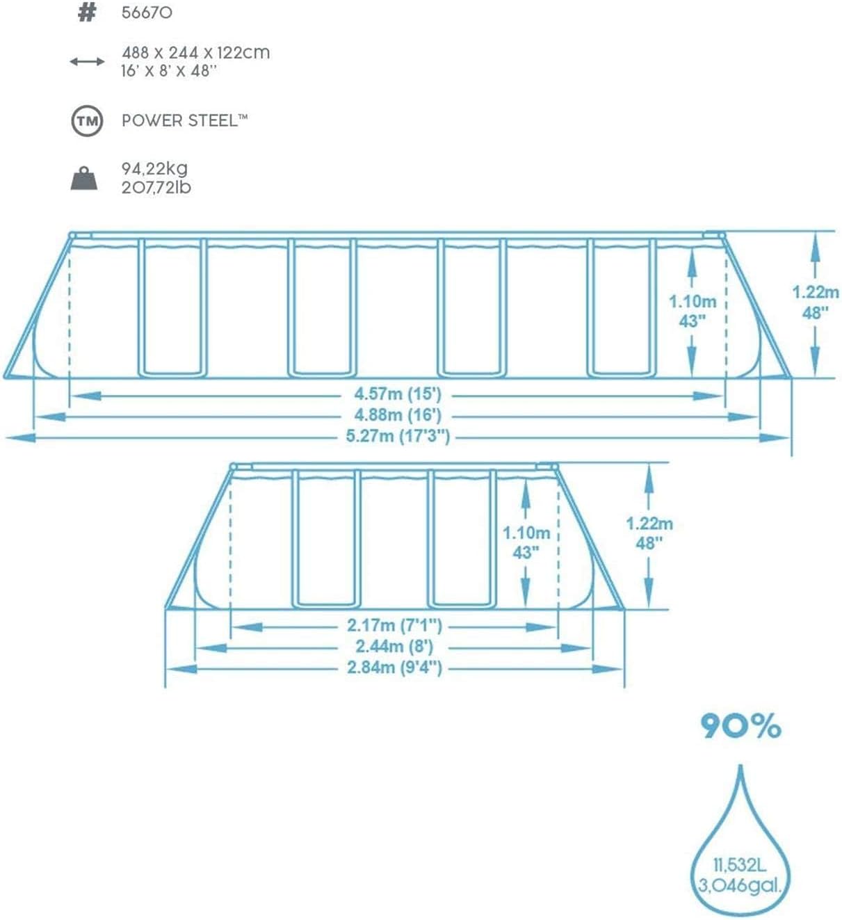 Bestway 56670-3 Piscina Rettangolare Fuori Terra Power Steel 488 x 244 x 122 cm