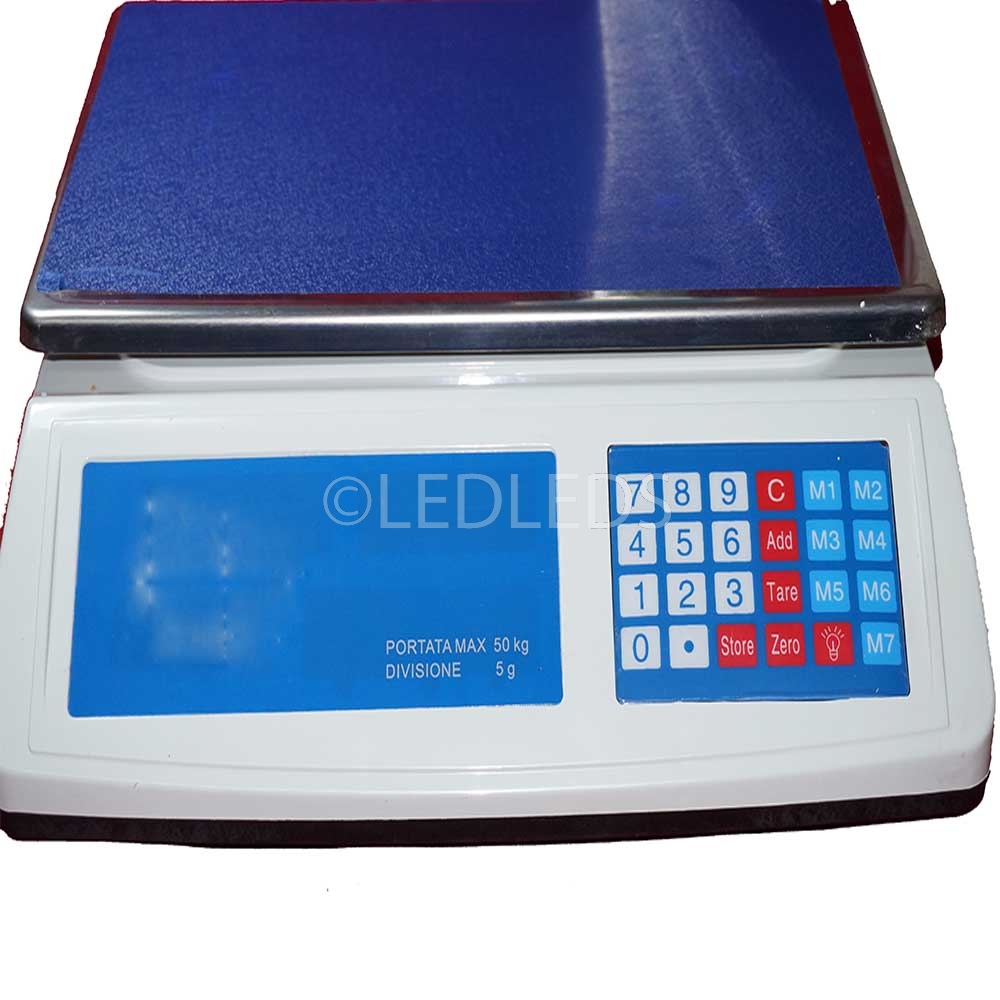 BILANCIA DIGITALE PROFESSIONALE CON DISPLAY DIGITALE E CONTROLLO DEI PREZZI, PIANO PESA MERCE IN ACCIAIO INOX, TASTI DI MEMORIA, MEMORIZZAZIONE DEI PREZZI AL KG FINO A 8 MEMORIE, IMPOSTANDO IL PREZZO AL KG SI CONOSCERA' ANCHE IL COSTO DELLA MERCE PESATA, AUTOTARATURA, UTILISSIMO FUNZIONAMENTO ANCHE A BATTERIA PER AMBULANTI O IN CASO DI ASSENZA CORRENTE ELETTRICA