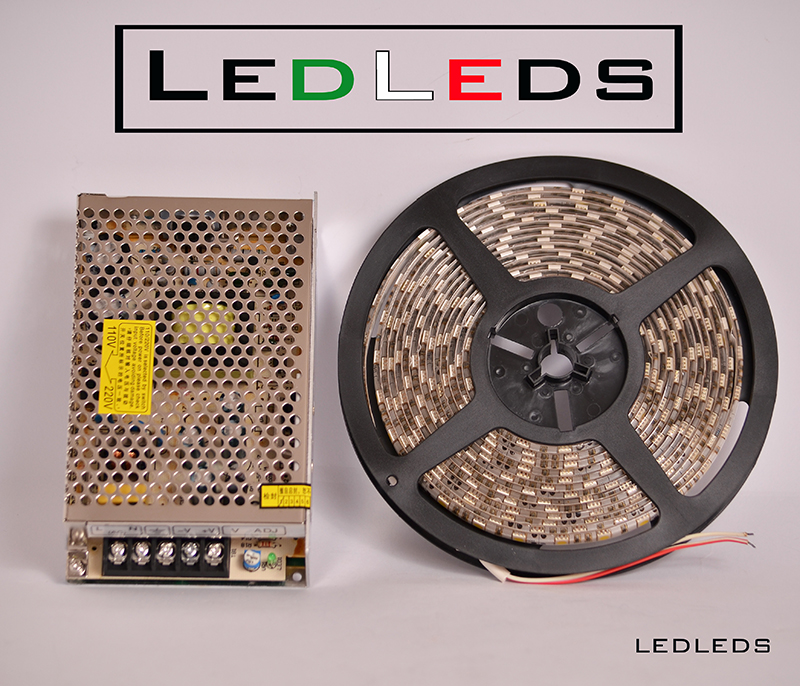 STRISCIA A LED SMD 5050(ALTA LUMINOSITA') 300 LED 5 METRI STRIP WHITE - BOBINA LUCE BIANCA FREDDA + alimentatore 12V 10A incluso