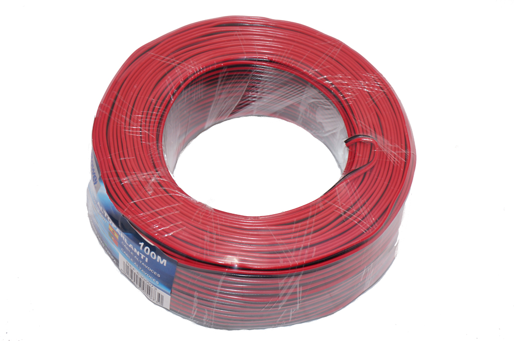 Utilissimo cavo di collegamento per altoparlanti e casse da auto o domestiche per creare impianti stereo di alta qualita e professionalita. La matassa ha una lunghezza di di 100 mt, il cavo e bipolare ed e costituito da una parte interna in rame conduttore, rivestita in PVC isolante in modo da collegare in totale sicurezza autoradio e casse. Inoltre questa formula evita problemi di qualsiasi genere, come corti circuiti o scintille, annullando cosi la possibilita di pericoli accidentali. Il cavo e strutturato in maniera tale che la parte negativa e positiva possono essere divise, semplificando le operazioni di installazione e montaggio.