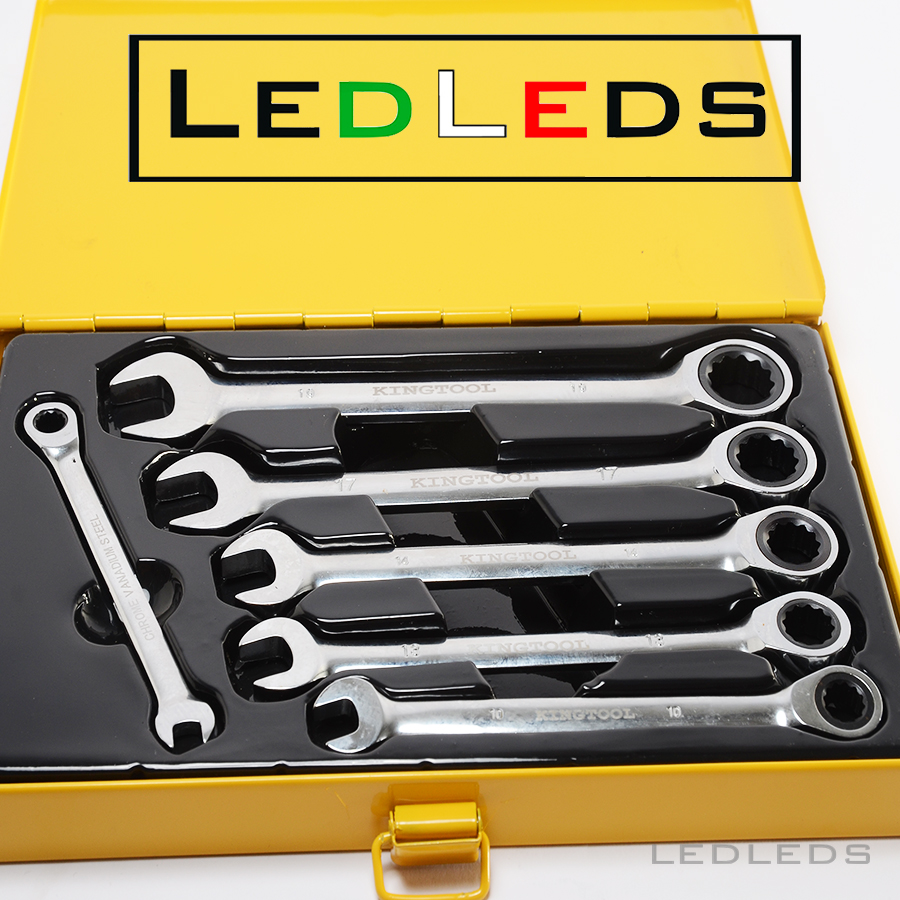Vi presentiamo un utilissimo set composto da 6 chiavi combinate a cricchetto in diverse misure,nello specifico:8mm,10mm,13mm,14mm,17mm 19mm.