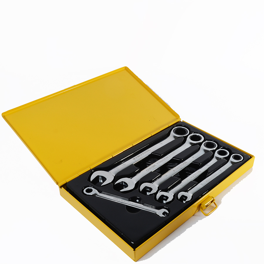 1 set da 6 chiavi combinate a cricchetto in custodia di plastica di colore blu