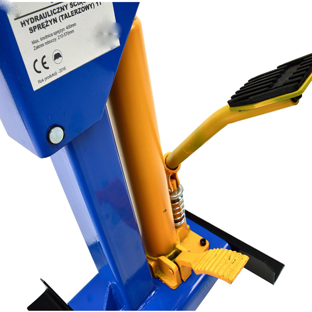 Compressore idraulico per molle a molla elicoidale per impieghi gravosi. La staffa del pistone scorre fornendo una regolazione multipla dell'altezza. Ideale per sostituire gli ammortizzatori e lavorare su sospensioni a puntone MacPherson.