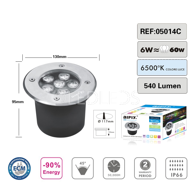 Eccellente faretto a LED segna passi ad incasso calpestabile per esterni con un fattore di impermeabilità di IP66 ideale per giardini, vialetti, fontane, piscine, per creare percorsi. Esteticamente bello si alimenta a 220V e grazie alla tecnologia a led danno la massima efficienza con il minimo consumo. La ghiera in metallo lucido e il vetro e il corpo in plastica resistente conferiscono a questo faretto solidità e robustezza, rendendo il faretto calpestabile. La durata di circa 50.000 ore è maggiore rispetto ai tradizionale faretti alogeni.