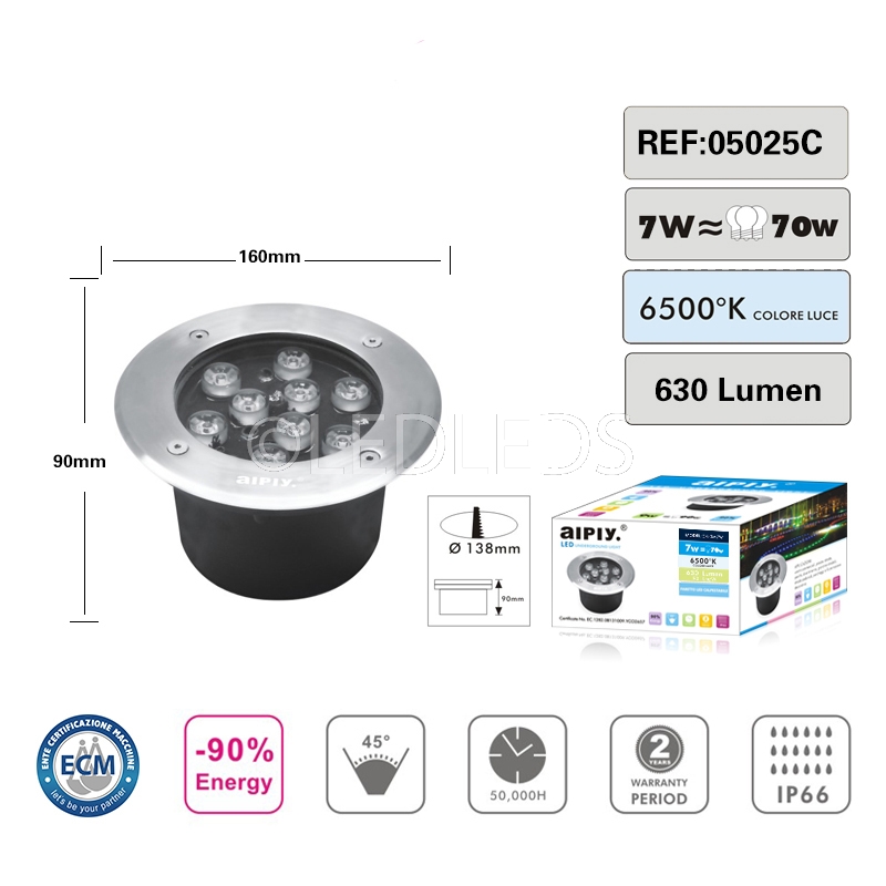 Eccellente faretto a LED segna passi ad incasso calpestabile per esterni con un fattore di impermeabilità di IP66 ideale per giardini, vialetti, fontane, piscine, per creare percorsi. Esteticamente bello si alimenta a 220V e grazie alla tecnologia a led danno la massima efficienza con il minimo consumo. La ghiera in metallo lucido e il vetro e il corpo in plastica resistente conferiscono a questo faretto solidità e robustezza, rendendo il faretto calpestabile. La durata di circa 50.000 ore è maggiore rispetto ai tradizionale faretti alogeni.