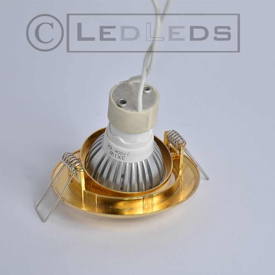 Home Page / FARETTI DA INCASSO A LED / FARETTO INCASSO LED ORO SPAZZOLATO GU10 3 LED 3 WATT RESA 35W LUCE CALDA FREDDA /