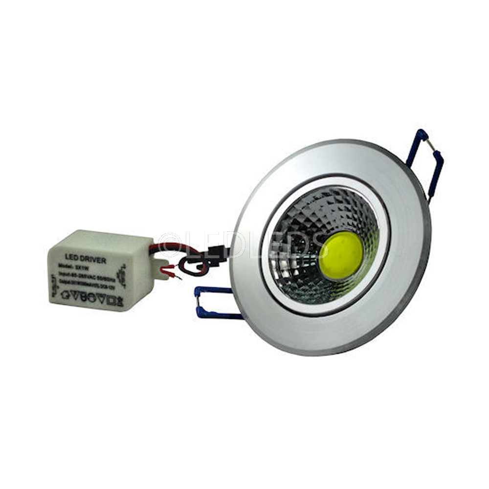 Un Faretto da Incasso in alluminio per soffitto con BASE ROTONDA da 5W .Altissima Luminosità 240 Lumens.
