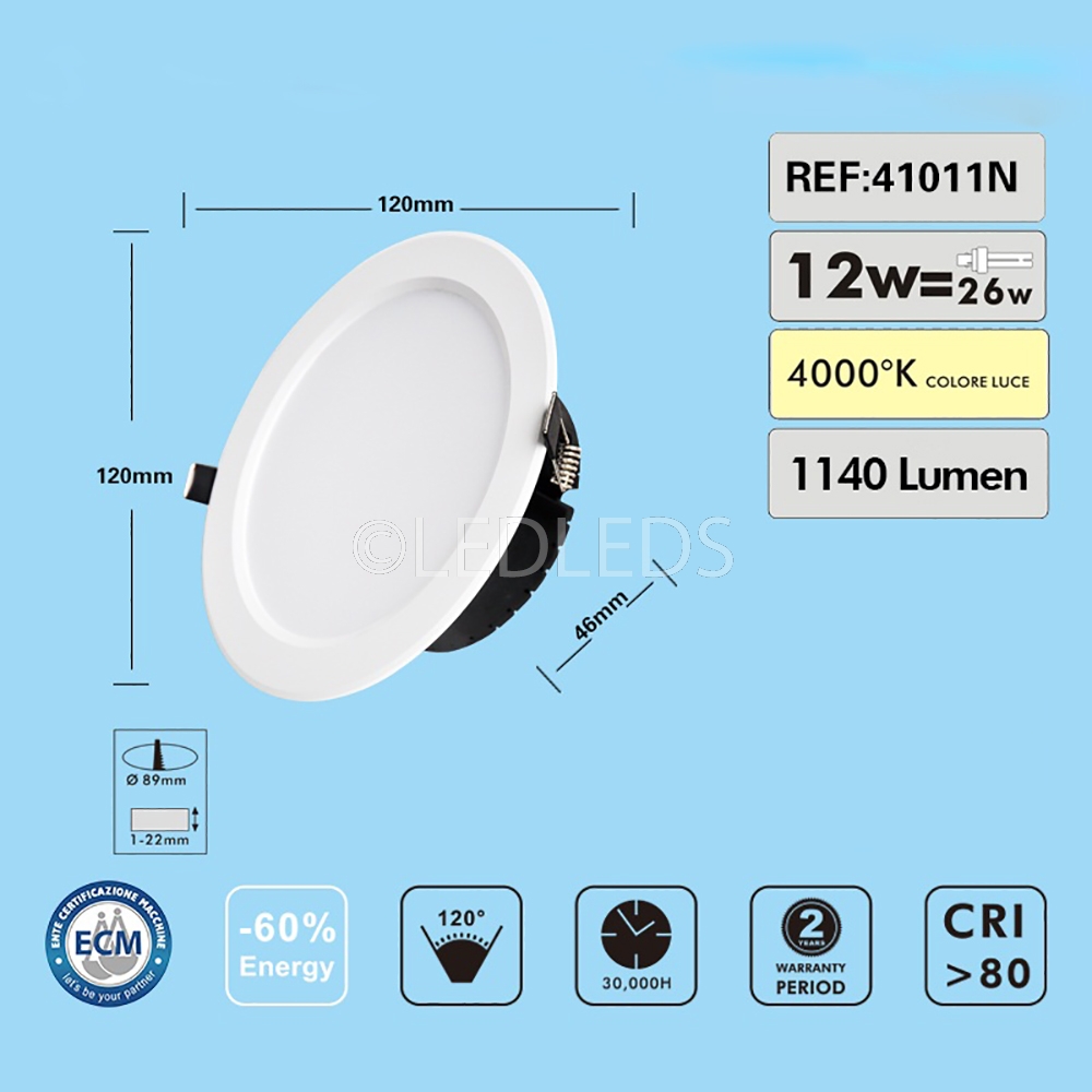 Elegante faretto da incasso composto da led superluminosi con angolo a 120 gradi.