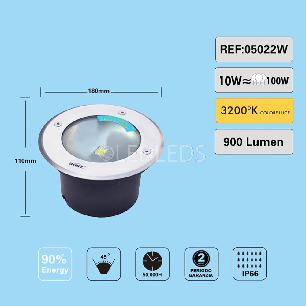 FARETTO SEGNAPASSO CALPESTABILE LED COB 10W RESA 100W IP67 LUCE CALDA 3200K