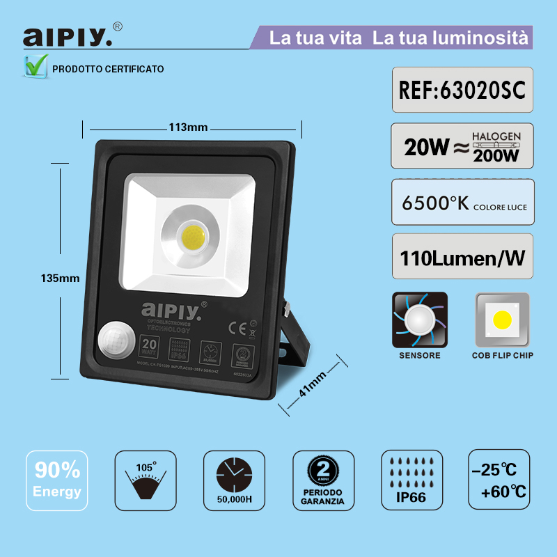 Home Page / FARI A LED PER ESTERNO / FARO LED 20W SENSORE DI MOVIMENTO ESTERNO CREPUSCOLARE LUCE FREDDA PROIETTORE /