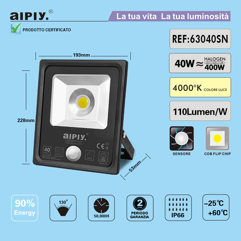 FARO LED 40W SENSORE DI MOVIMENTO ESTERNO CREPUSCOLARE LUCE NATURALE PROIETTORE