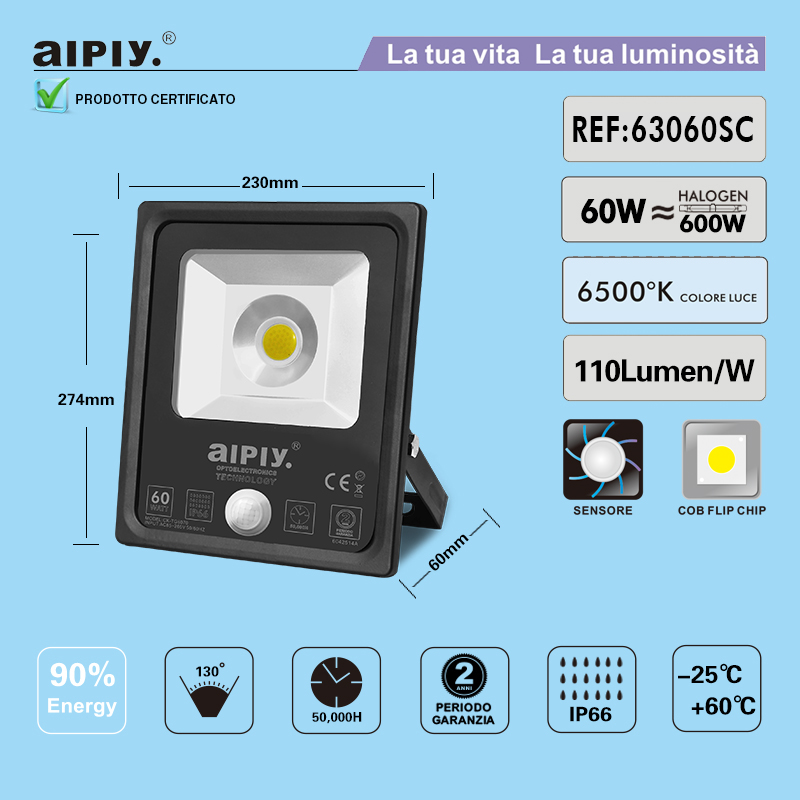 Home Page / FARI A LED PER ESTERNO / FARO LED 60W SENSORE DI MOVIMENTO ESTERNO CREPUSCOLARE LUCE BIANCA PROIETTORE /