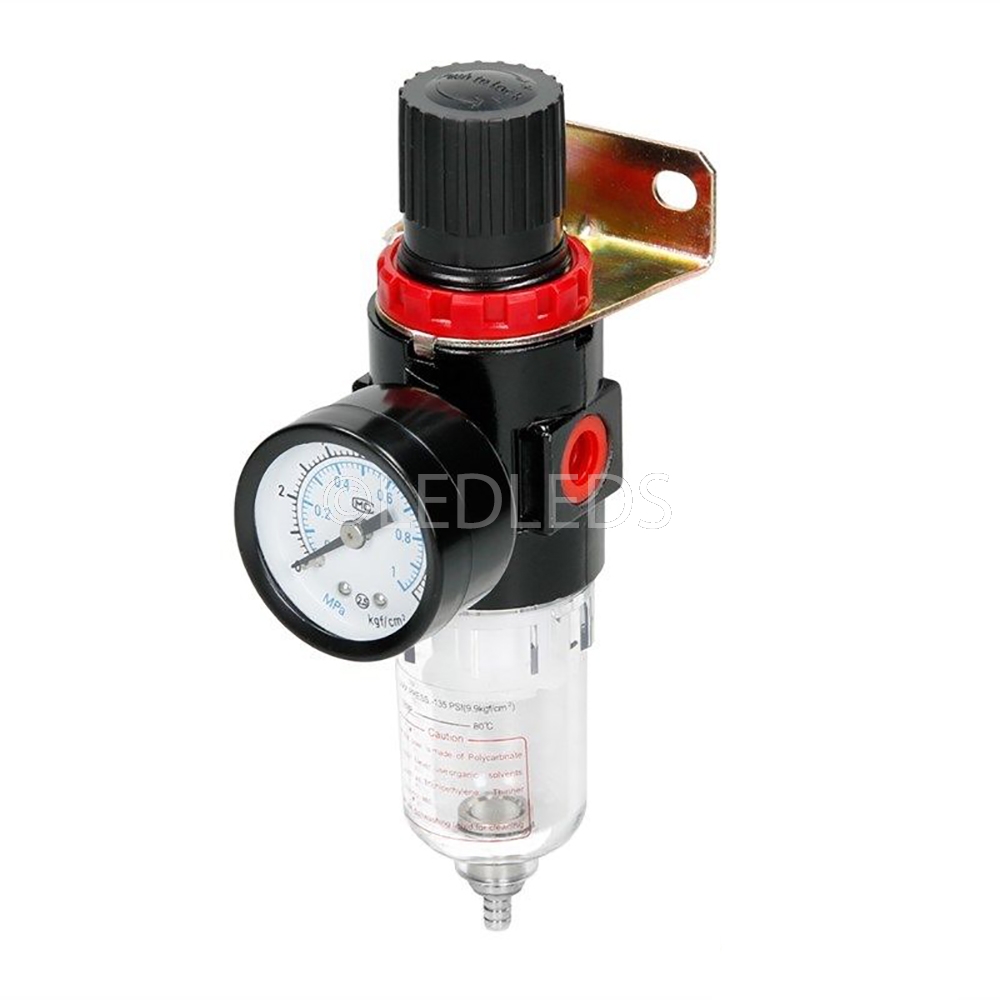 Fornisce pulita, aria, secca regolata compressa. Previene danni costosi utensili pneumatici causati da scala, ruggine e umidità. Installazione semplice significa tempi minimi di fermo. 1/4 "filettatura interna BSP max di lavoro 10bar Pressione (145psi)... Regolabile gamma di pressione 0.5-8.5bar Reservoir capacità 150ml.