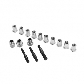Fissaggio permanente e affidabile. Maniglie con impugnatura morbida per rivetti filettati in materiali sottili. Uso per lamiera, plastica e fibra di vetro. Include adattatori 4 mm, 5 mm, 6 mm 8mm