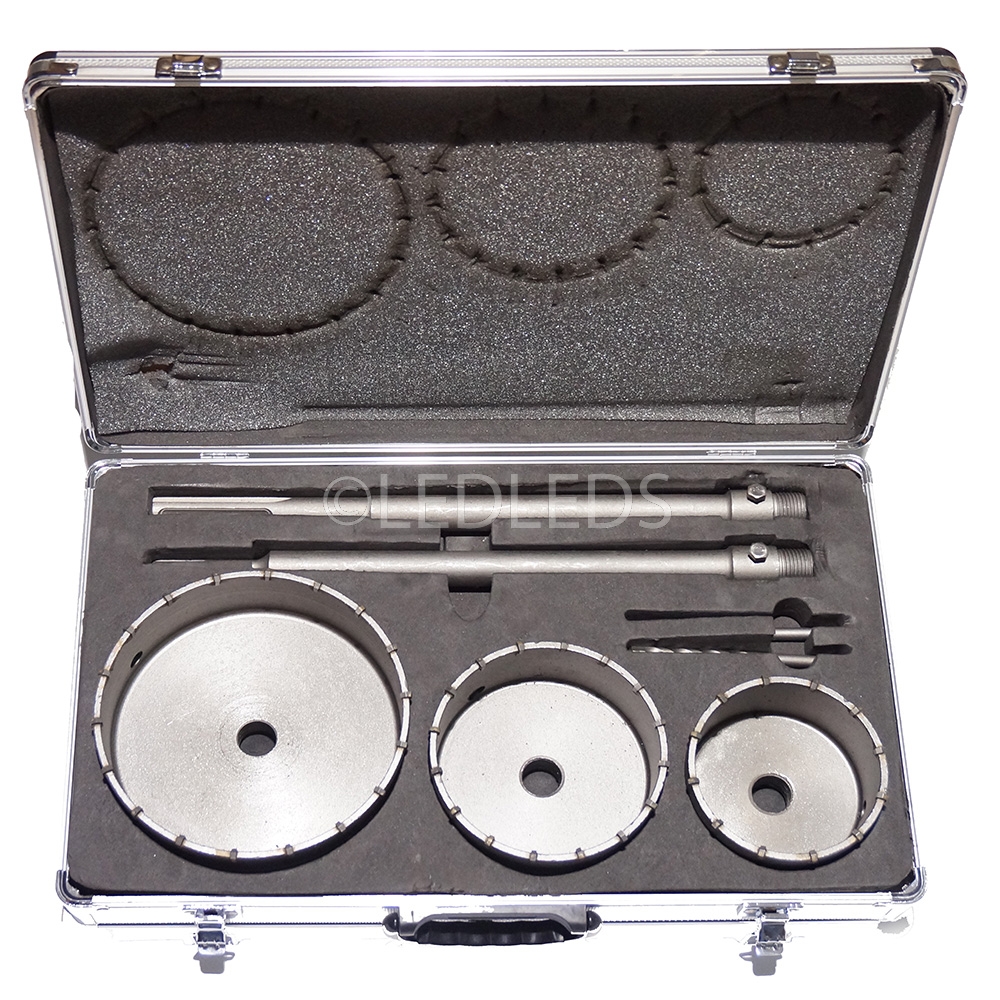 Kit frese carotatrici per trapano in acciaio widia, ideale per forare qualsiasi tipo di pietra, marmo, cemento, calcestruzzo.