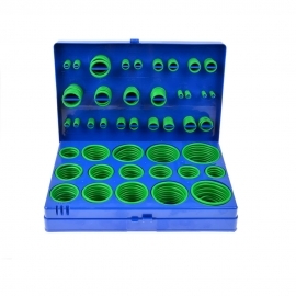 Un set professionale di O-ring per condizionamento con diametri dei fori da 3,15 a 50 mm e spessori di 1,8, 2,65 e 3,5 mm.