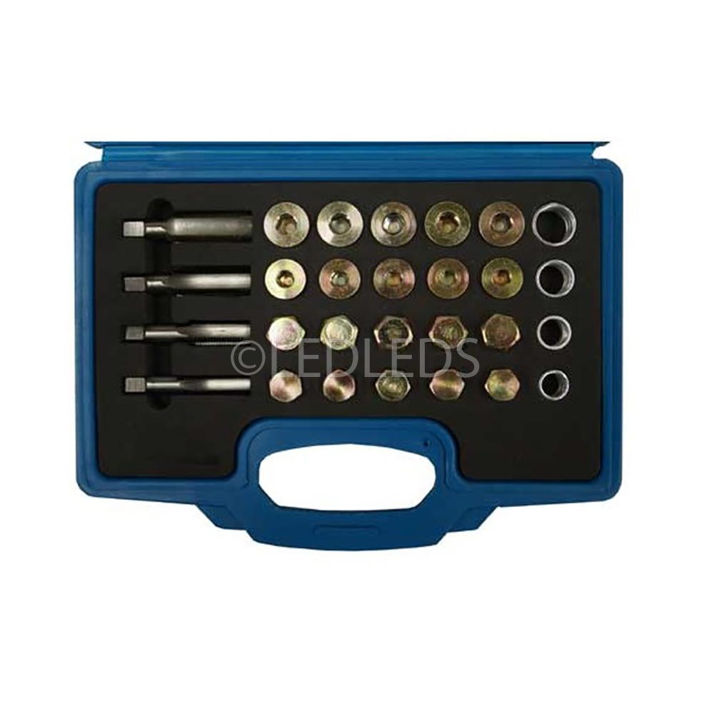 Questo kit fornisce viti tappo di scarico a filo nuovi e di ricambio allargati per l'uso quando i fili esistenti sono danneggiati o usurati.