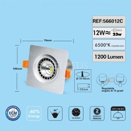 Elegante faretto quadrato da incasso composto da led superluminosi con angolo a 40 gradi.