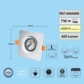 Elegante faretto quadrato da incasso composto da led superluminosi con angolo a 40 gradi.
