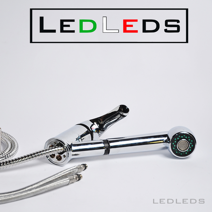 Monoforo a canna bassa, composto da un beccuccio orientabile quindi utilizzabile per lavelli a due vasche, miscelatore monocomando e doccetta estraibile a doppio getto, utile per il lavaggio di frutta e verdura o per risciacquare pentole sporche con molta facilità.