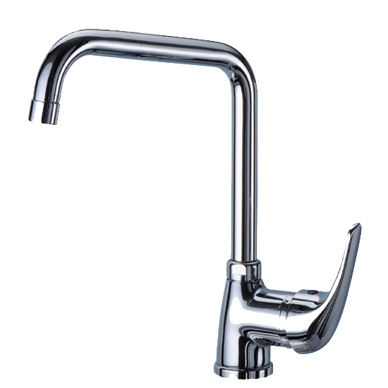 Monoforo a canna alta, composto da un beccuccio orientabile quindi utilizzabile per lavelli a due vasche e miscelatore monocomando.