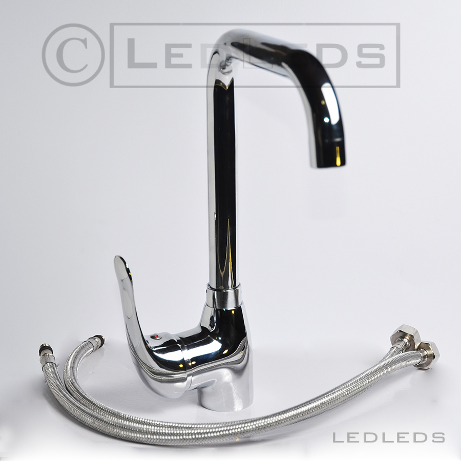 Monoforo a canna alta, composto da un beccuccio orientabile quindi utilizzabile per lavelli a due vasche e miscelatore monocomando.