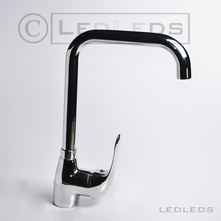 Monoforo a canna alta, composto da un beccuccio orientabile quindi utilizzabile per lavelli a due vasche e miscelatore monocomando.