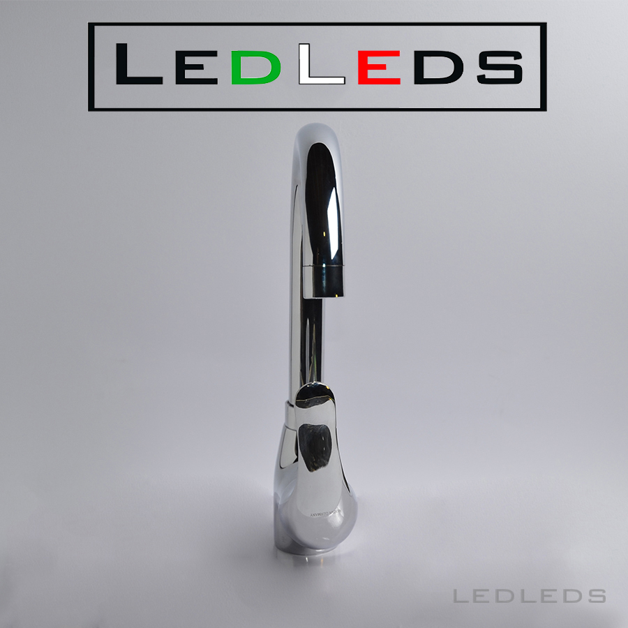 Monoforo a canna alta, composto da un beccuccio orientabile quindi utilizzabile per lavelli a due vasche e miscelatore monocomando.