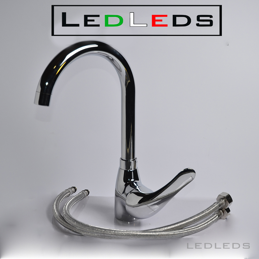 Monoforo a canna alta, composto da un beccuccio orientabile quindi utilizzabile per lavelli a due vasche e miscelatore monocomando.