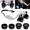 • OCCHIALI LENTE INGRANDIMENTO 10X 15X 20X 25X PRECISIONE OCULARI 4 LENTI LUCI LED