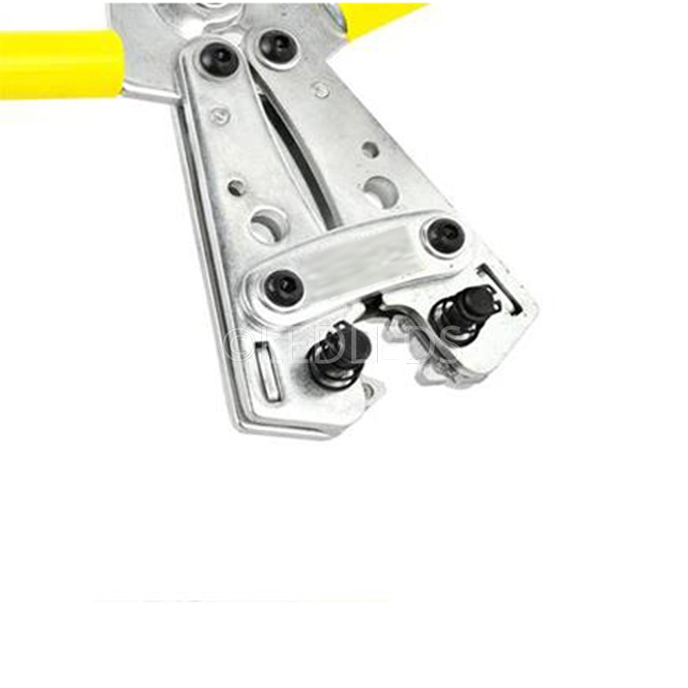 Pinza a crimpare per capicorda. Facile da stringere grazie alle teste rotanti con un perno di bloccaggio a molla. Comprime tutte le comuni dimensioni del connettore in rame di fascia medio-piccola. Stampi di crimpatura ad alta precisione con unità meccanica autobloccante e sbloccante garantiscono un'elevata qualità di crimpatura.