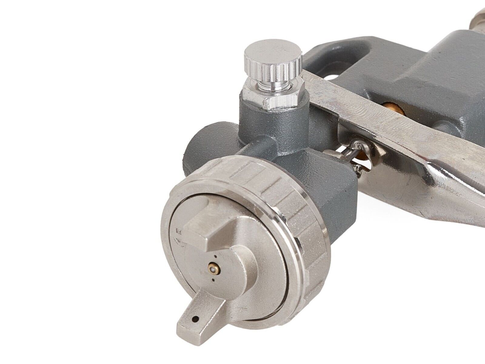 Pistola a spruzzo con alimentazione a gravità tipo HVLP 1,5 mm. Ideale per l'uso con lacche, smalti, mordenti, uretani e vernici a bassa viscosità e ad asciugatura rapida. Il design HVLP (alto volume e bassa pressione) previene le perdite, così non dovrai mai preoccuparti di fare disordine o di sprecare vernice.