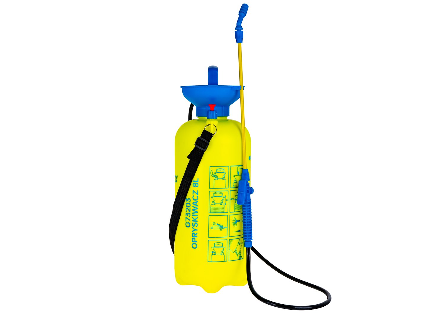 Capacità 8 l Peso corp. Scala da 2 kg Lancia dura con ugello Pistone rinforzato Cintura del braccio con regolazione Valvola di sicurezza