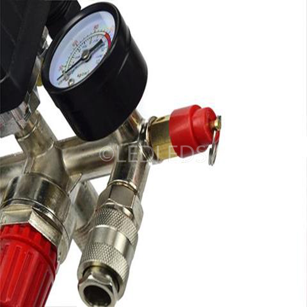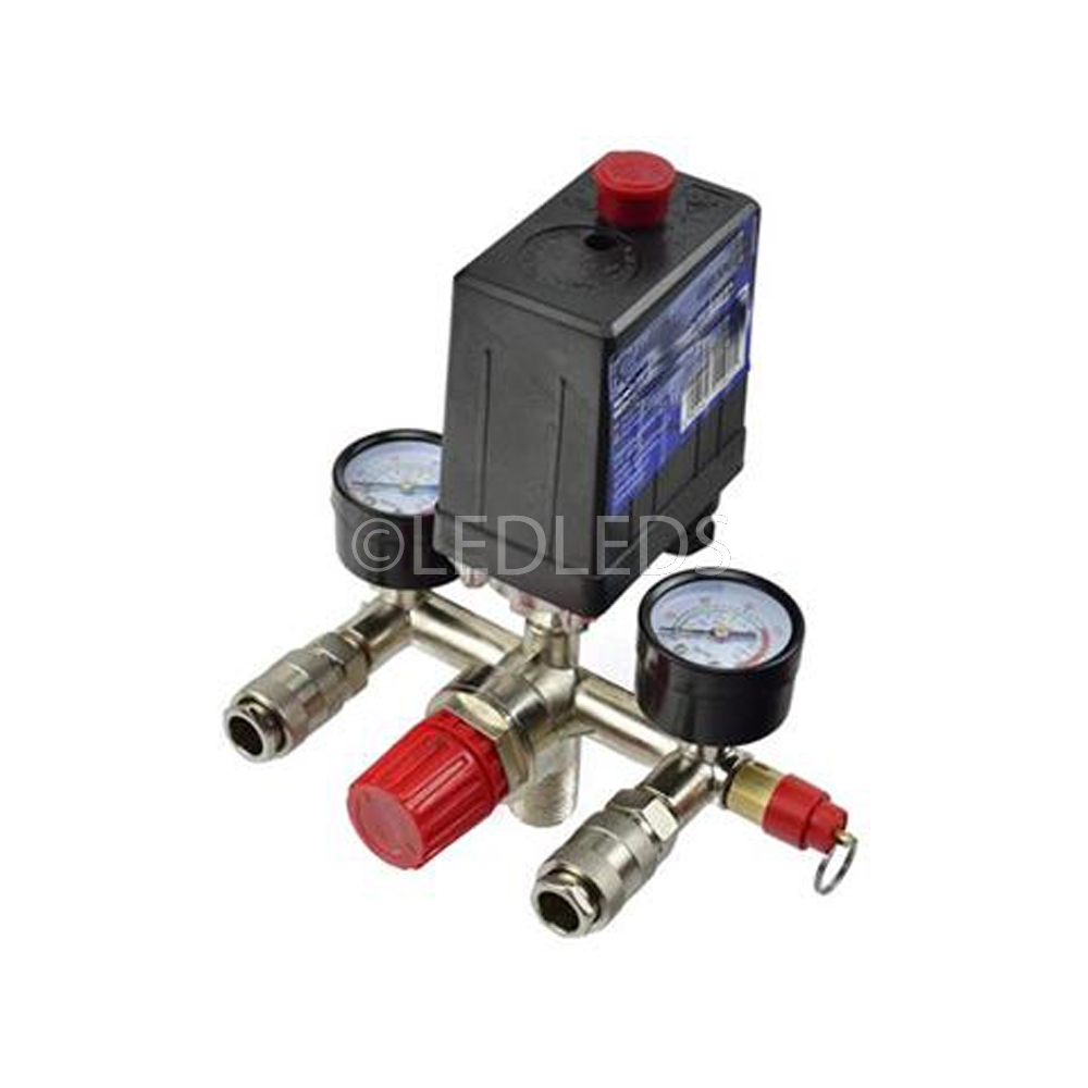 - riduce la pressione - valvola limitatrice di pressione - 2 manometri - intestazione - max. pressione 12bar - due connettori rapidi europei