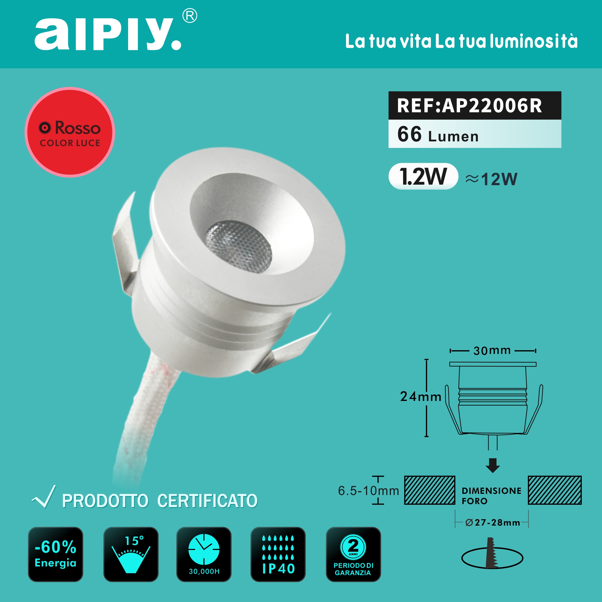 Home Page / PUNTO LUCE LED FARETTO MINI / Punto luce faretto incasso 1 led 1 watt luce ROSSO ROSSA 220v cielo stellato /