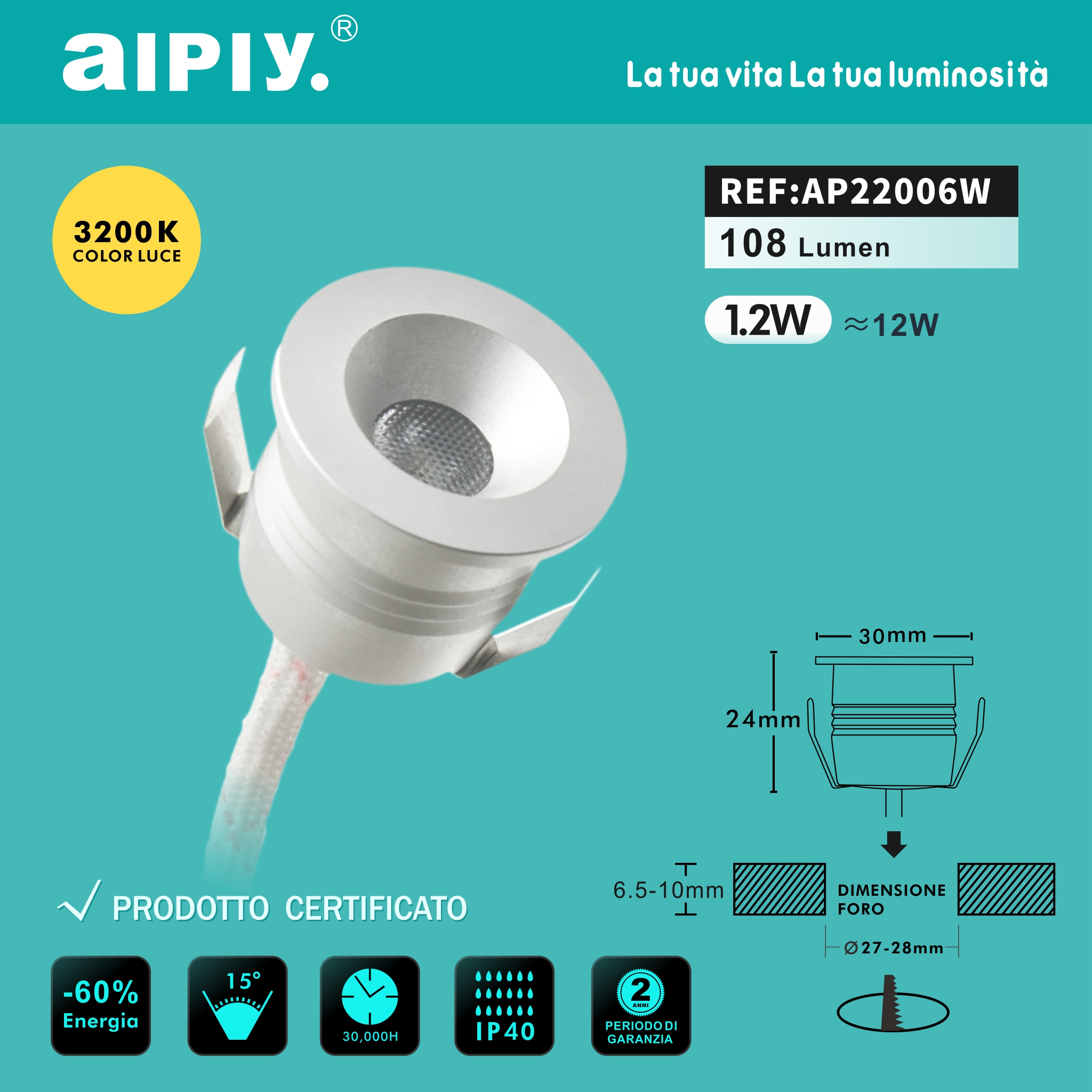 LED PUNTO LUCE A INCASSO AD ALTA POTENZA IL NUOVO "LED HP" E’ UN MINI FARETTO DA INCASSO TONDO CON CORPO REALIZZATO IN ACCIAIO; IL NOSTRO PRODOTTO E’ UN PARTICOLARE PUNTO LUCE ORNAMENTALE. ALIMENTAZIONE 220V- ASSORBIMENTO 1.2 WATT IL NOSTRO PRODOTTO E’ PRONTO PER L'INSTALLAZIONE; IL FARETTO E’ FORNITO CON LED DRIVER E CAVI ELETTRICI DA COLLEGARE DIRETTAMENTE ALLA RETE ELETTRICA 220V E DI MOLLETTE PER L’INCASSO IN SOFFITTI DI CARTONGESSO. QUESTO PUNTO LUCE LED E’ PARTICOLARMENTE INDICATO PER COMPOSIZIONI DI LUCI; E’ IDEALE PER GIOCHI DI CONTROSOFFITTATURA"CIELO STELLATO"-SEGNAPASSI PER SCALE INTERNE E NON SOLO.HA UN CONSUMO ENERGETICO QUASI PARI A 0;