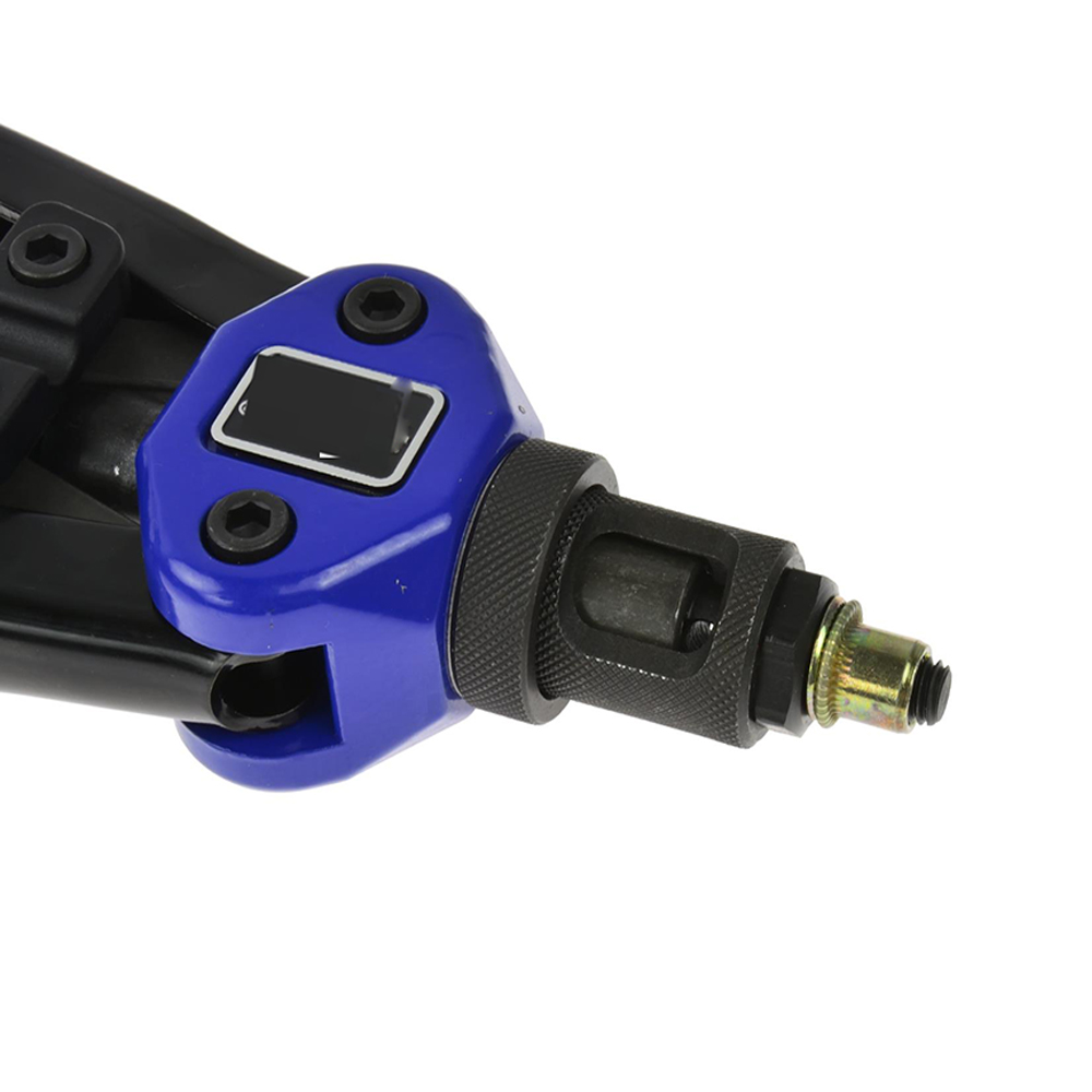 Rivettatrice a leva progettata per unire vari materiali con dadi rivetti . La rivettatrice è realizzata con materiali di altissima qualità . Dotato di un set di cinque teste nelle taglie: M3, M4, M5, M6, M8, M10. L'uso di dadi per rivetti consente di avvitare elementi aggiuntivi con una vite delle dimensioni di un dado per rivetti.