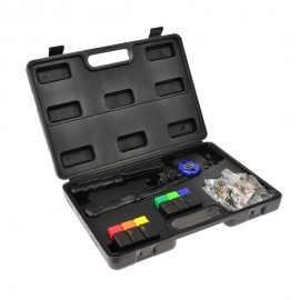 Rivettatrice a leva progettata per unire vari materiali con dadi rivetti . La rivettatrice è realizzata con materiali di altissima qualità . Dotato di un set di cinque teste nelle taglie: M3, M4, M5, M6, M8, M10. L'uso di dadi per rivetti consente di avvitare elementi aggiuntivi con una vite delle dimensioni di un dado per rivetti.