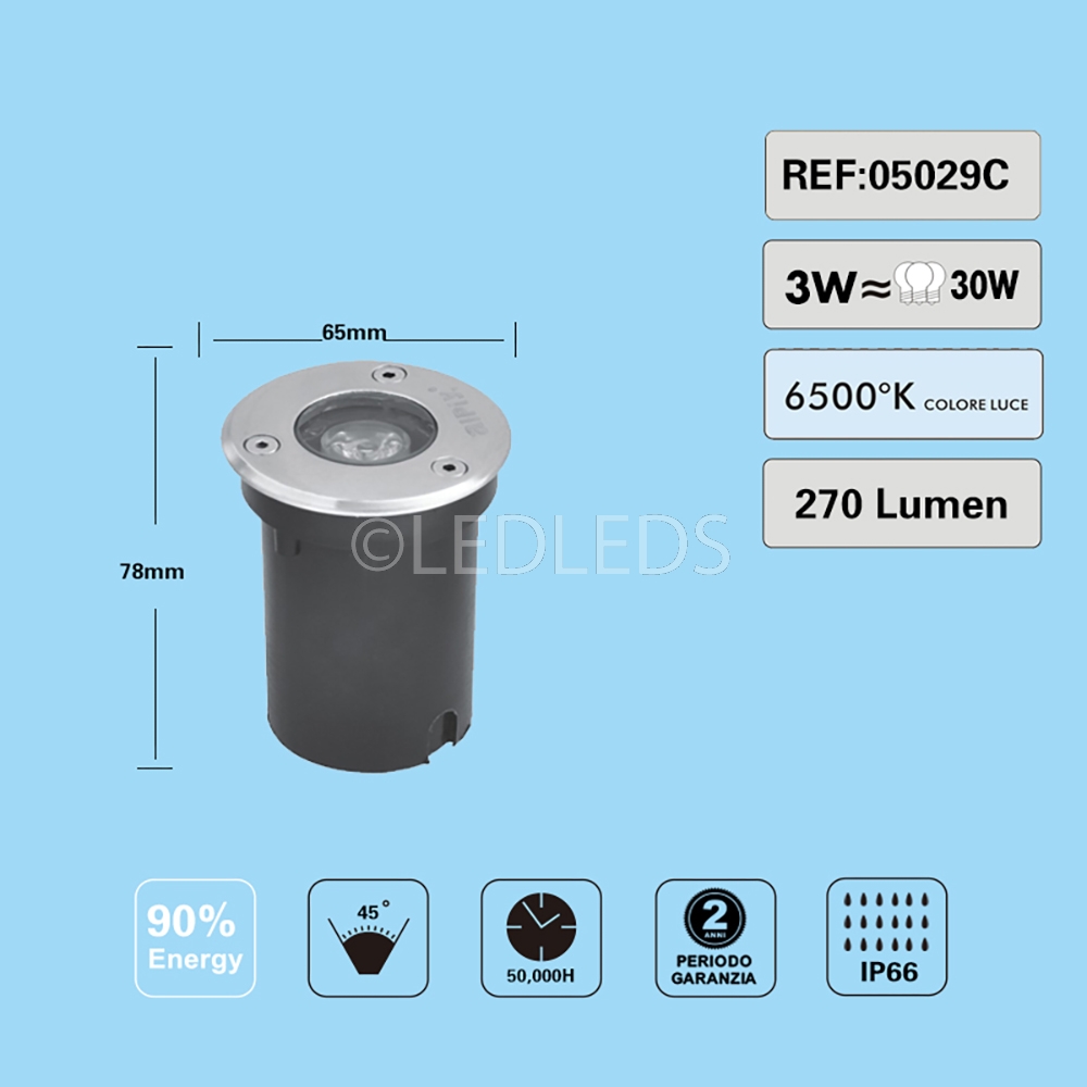 Può essere cementato nel pavimento oppure sotterrato nel giardino,è pronto per l’installazione, non necessita di trasformatore.