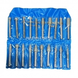 La serie è composta da varie forme, a disco, cilindrica, cilindrica a punta tonda, a cono appuntito, a cono troncato con punta arrotondata, a cono troncato con punta piatta, a cono invertito, sferiche ed a uovo. Ideali per dettagli, per tagliare, per incidere, per intagliare, per ritoccare e rifinire. Ottime per il legno, la giada, la ceramica, il vetro, l'acciaio temprato, le pietre semipreziose ed altri materiali duri. Le frese sono ricoperte con particelle di diamante. Diametro gambo: 6mm. Lunghezza: 60mm.