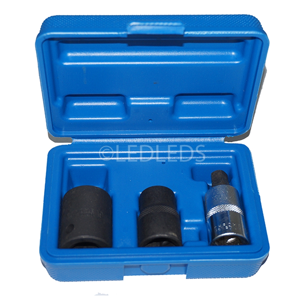 Set di tre chiavi a bussola con profilo pentagonale per lo smontaggio delle pinze freno vetture Opel, Ford, Peugeot, Renault, Smart.
