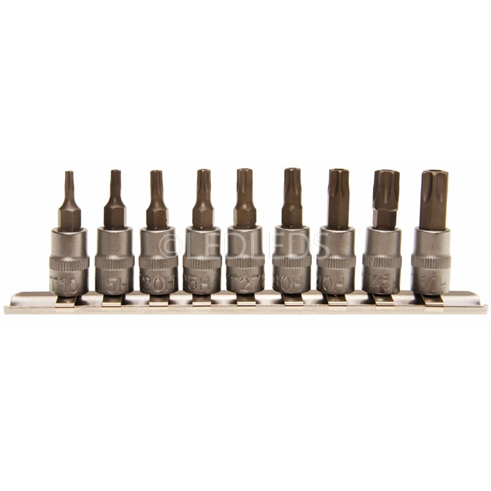 SET 9 BUSSOLE TORX MASCHIO FORO 1/4 T10H T15H T20H T25H T27H T30H T40H T45H T50H