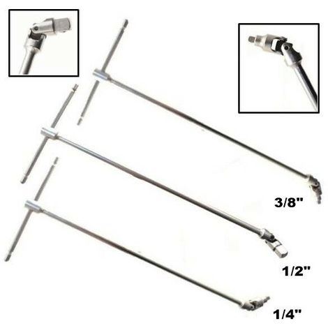 TRIS DI CHIAVI A SNODO In acciaio cromo-vanadio. Finitura satinata. Adatte per tutte le bussole da 1/2 3/8 1/4" Lunghezza 45 CM