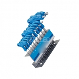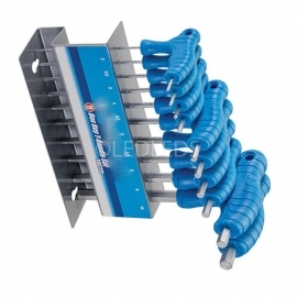 Cromo vanadio. Chiavi metriche ed esagonali a doppio attacco di tipo T . Taglie: 2, 2.5, 3, 4, 4.5, 5, 5.5, 6, 8 e 10 mm
