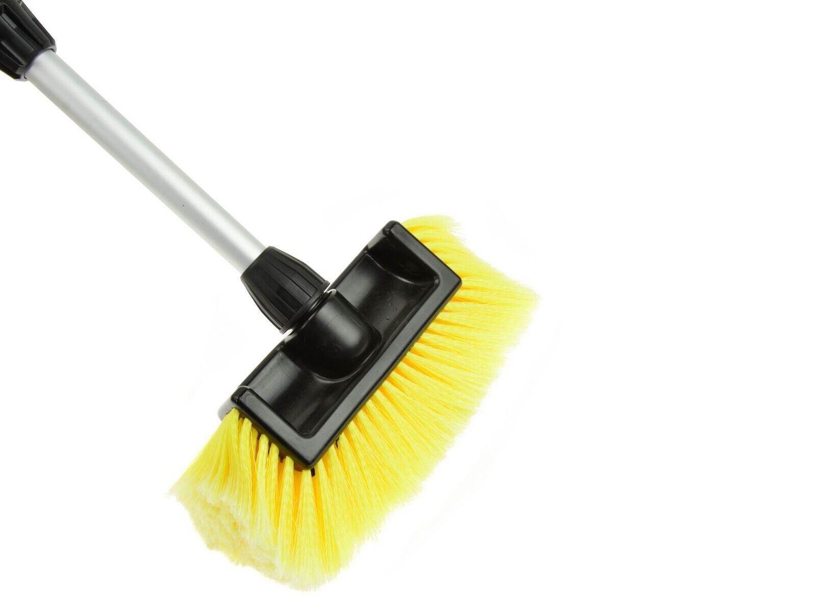 Spazzola di lavaggio telescopico a flusso continuo, palo in alluminio leggero. attaccamento ad attacco rapido. Paraurti di protezione in gomma e setole morbide. Per la pulizia di veicoli, verniciatura e conservatori. Si estende da 1070 - 1760 mm