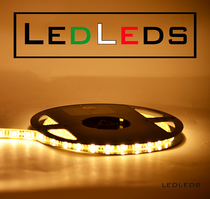 STRISCIA A LED SMD 5050 (GRANDI - ALTA LUMINOSITA') 300 LED 5 METRI STRIP WARN WHITE - BOBINA LUCE BIANCO CALDO (impermeabile IP65) 14,4 WATT AL METRI